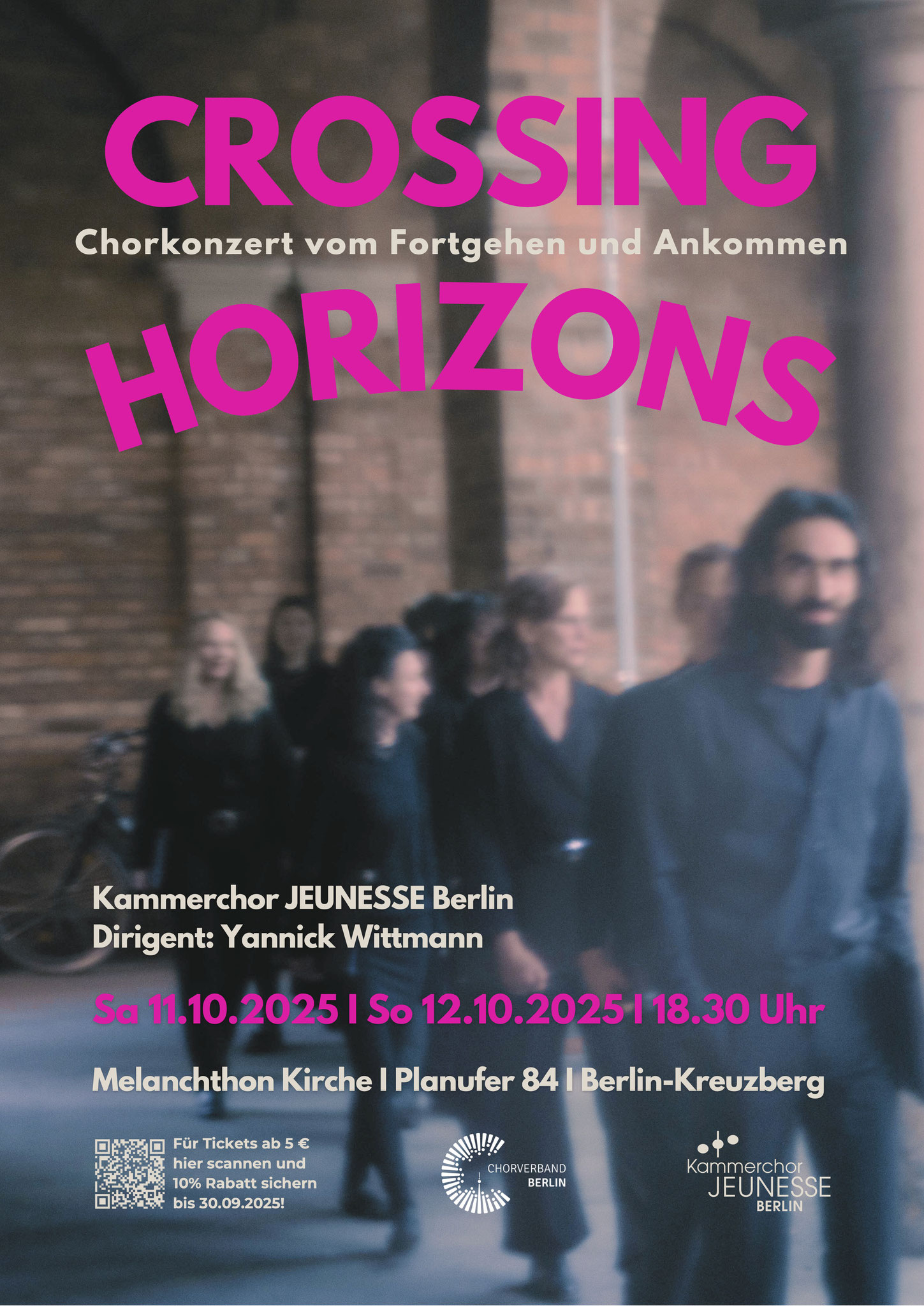 Mit “Crossing Horizons” möchte der Kammerchor JEUNESSE Berlin eine Bühne schaffen für die Geschichten von Menschen, die ihre Heimat verlassen haben und in ein neues Land gezogen sind. Themen wie Abschied, neue Begegnungen, Spracherwerb, Träume und Wünsche werden nach und nach in Musik und Wort erkundet. Hierzu hat der Chor Interviews mit Menschen mit Migrationsgeschichte aufgezeichnet, um die Musik während des Konzertes immer wieder durch echte Geschichten zu bereichern. Das Programm umfasst Werke von Renaissancemeistern wie Giovanni Pierluigi da Palestrina und Thomas Tallis über Stücke von Clara Schumann und Hans Koessler bis hin zu zeitgenössischen Komponist:innen wie Einojuhani Rautavaara, Laura Jekabsone und Yannick Wittmann.